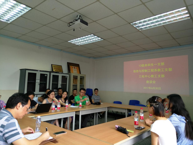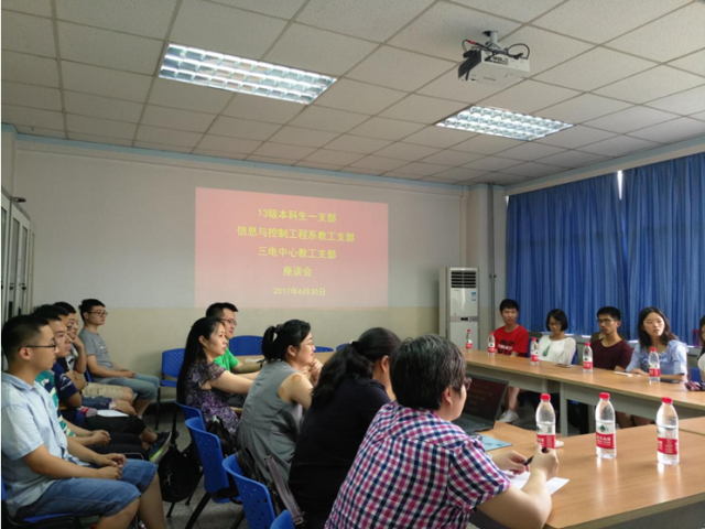 2017年6月30日,公司党委信控系教工支部、三电中心教工支部与13级本科生一支部举行毕业座谈会,参会人员包括信控系教师焦尚彬、季瑞瑞、辛菁、李生民、马炫、刘庆丰,三电中心教师王馨梅、邢楠、阎晓妹,学工办杨红娟老师以及13级本科生一支部的员工党员代表。