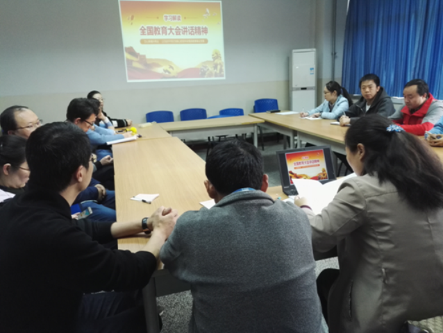 9月18日,公司党委中心组在公司会议室召开秋季学期第一次理论学习会,学习全国教育大会精神,党委书记高勇主持学习,公司中心组成员参加学习。10月17日公司党委组织全体教工支部书记进行集中学习。公司党委书记高勇以党课形式从全国教育大会的重要意义及要求、大会内容介绍、新形势下教育工作该怎么做、争做“四有好老师”等方面对习近平总书记讲话精神进行领学。各教工支部通过支部书记上党课的形式与“三会一课”内容相结合,同时,公司加大宣传力度,积极营造学习氛围。公司网站设置了“学习宣传贯彻全国教育大会”专栏、公司党委微信公众号先后推送了四期专题内容、院内宣传橱窗进行了专题宣传。