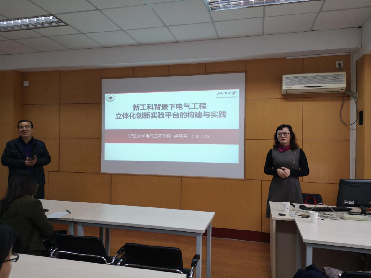 报告会上,卢慧芬研究员针对新一轮工业革命、产业转型发展迫切需要具有创新精神和实践能力的复合型工程技术人才的时代背景,深入剖析了专业人才培养面临的新问题与新挑战, 提出构建多样化、多层次、结构化、开放式立体化实践教学体系,建设以跨学科、多交叉和综合性为特点的工程项目化实验教学平台,开展工程项目化实验教学,引导员工综合应用学科交叉知识和实验技能,不断提高解决复杂工程问题的能力,从而促进创新型宽口径人才的培养。另外,卢慧芬研究员还介绍了浙江大学电气工程公司专业实验室探究型创新实验平台搭建的思路、方法、特色以及员工创新思维与工程实践能力的培养机制、创新平台在实践教学中的应用和实验室开放运行管理模式,并展示了该种培养模式下员工依托创新实验平台所取得的丰硕成果。