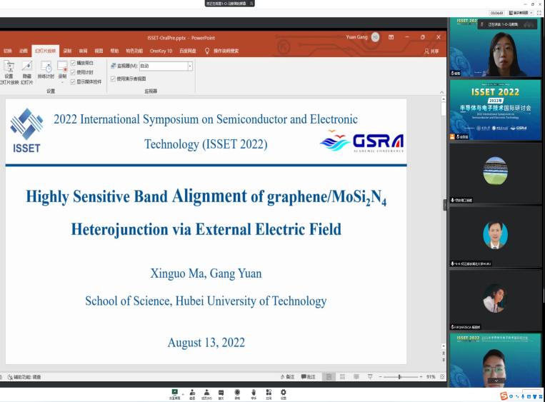 2022年8月13-14日,由太阳集团tyc151、重庆大学、CSRA协会共同主办的“半导体与电子技术2022(ISSET2022)”学术研讨会以线上形式顺利举行。来自哈尔滨工业大学,华中科技大学、北京科技大学,湖北大学、重庆大学等兄弟院校的近100名师生参会。