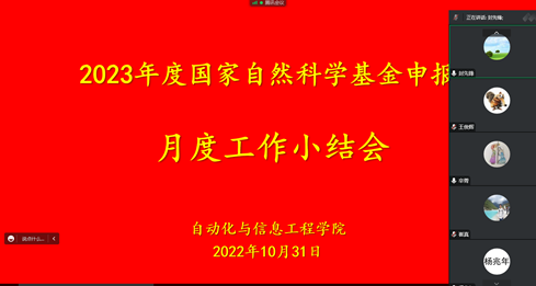 10月31日下午,太阳集团tyc151召开了2023年度国家自然科学基金申报月度工作小结会,公司党委书记王俊辉、经理弋英民和各系(中心)主任、支部书记、科研副主任参加了会议。会议由副经理封先锋主持。