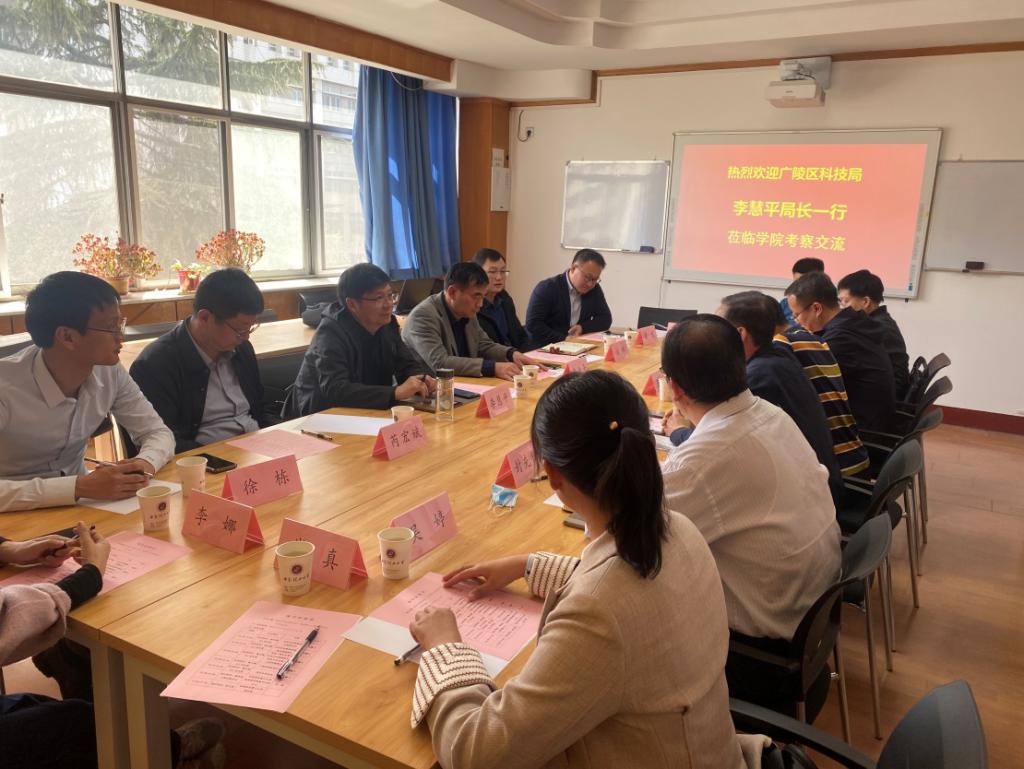 李慧平感谢公司的热情接待,肯定了公司的人才培养质量和科研实力,介绍了扬州市广陵区的产业经济布局和科技发展特色、规划,希望以此次活动为新起点,推动双方在人才培养、科技创新等方面的深度合作。扬州市广陵区科技镇长团副团长、广陵经济开发区党工委副书记芮宏斌教授介绍了公司吴婷副教授与扬州上扬无线射频识别有限公司科研合作项目取得的成效,表示将发挥桥梁作用,积极推动广陵区与公司开展更广泛的合作。