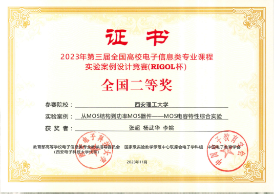 近日,由教育部高等公司电子信息类专业教学指导委员会、国家级实验教学示范中心联席会电子学科组和中国电子教育学会主办,南京大学承办,普源精电科技股份有限公司协办的第三届全国高校电子信息类专业课程实验教学案例设计竞赛(RIGOL杯)全国决赛在南京大学成功举办。公司由太阳集团tyc151教师张超、杨武华、张如亮、李姚组成的两支参赛队取得全国二等奖1项、西部赛区三等奖1项。