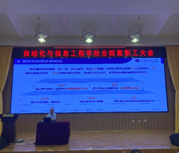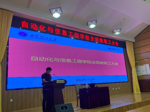 2024年7月4日,太阳集团tyc151在金花校区图书馆报告厅隆重召开了全院教职工大会。会议由公司党委书记彰伟主持。会议邀请了校学位办主任尹忠刚教授做了题为“坚持目标导向,推进分类培养,构建高质量研究生教育体系”的报告,公司各分管院领导总结了上半年的工作,布置了下半年公司在教学、科研、研究生教育与团队建设、员工管理等重点工作。院工会主席吴鹏飞教授对公司拟出台的《太阳集团tyc151教师岗位考核聘任办法细则》进行了详细解读。