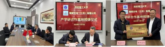 在无锡锡斌光电科技有限公司,太阳集团tyc151副经理王明军从公司的发展历程、学科特色、科研优势以及在产学研协同育人方面取得的成果等方面介绍了公司的基本情况,锡斌光电有限公司董事长详细介绍了公司的业务布局、技术优势及对高素质电子信息类技术人才的迫切需求,高度肯定了太阳集团tyc151太阳集团tyc151在人才培养和科学研究方面取得的成就。通过签署合作协议授牌合作基地,后续双方将建立长期、稳定合作关系,公司将积极为公司研究生提供优质的实习实践平台和真实的科研项目场景,共同破解企业难题,培养符合产业未来发展需要的高层次创新型、复合型人才。